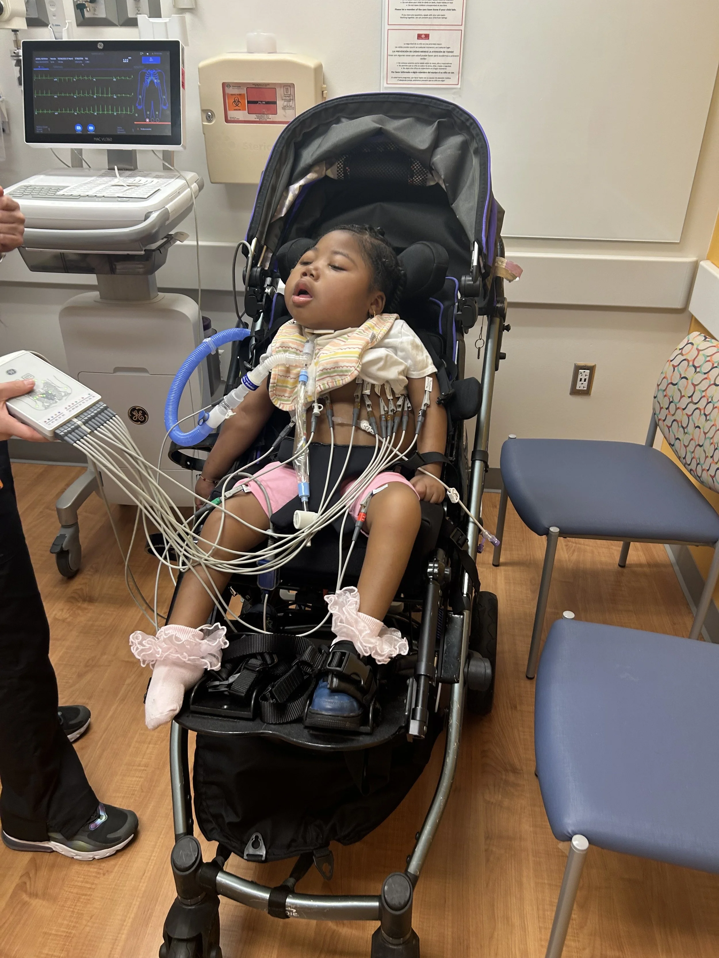 After an emergency visit to Kingwood Hospital and a transfer to Texas Children’s The Woodlands, an EEG confirmed Kamiyah was having seizures. She was then moved to Texas Children’s main campus, where doctors diagnosed infantile spasms and a floppy airway, providing an NG tube for feeding and medications. A misdiagnosis of Zellweger Syndrome at four months led to the temporary loss of her voice.